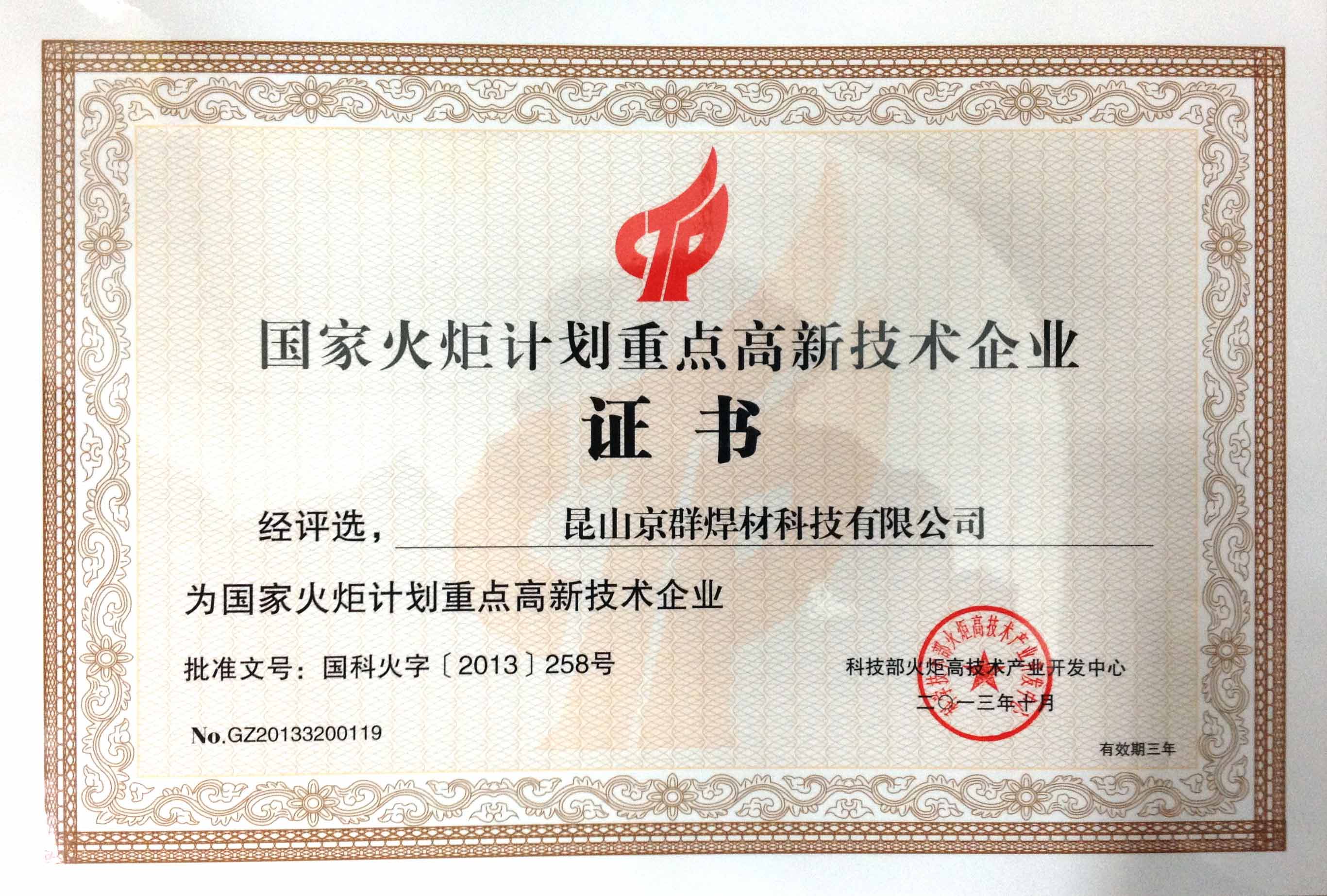 High Tech Enterprise Certificate