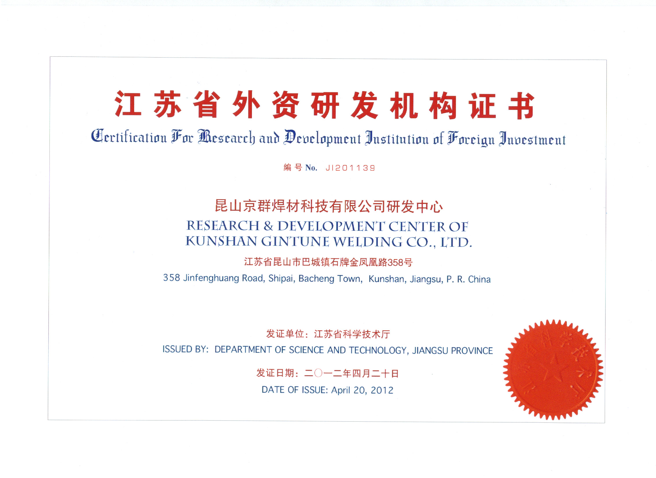 江蘇省外資研発機(jī)構(gòu)