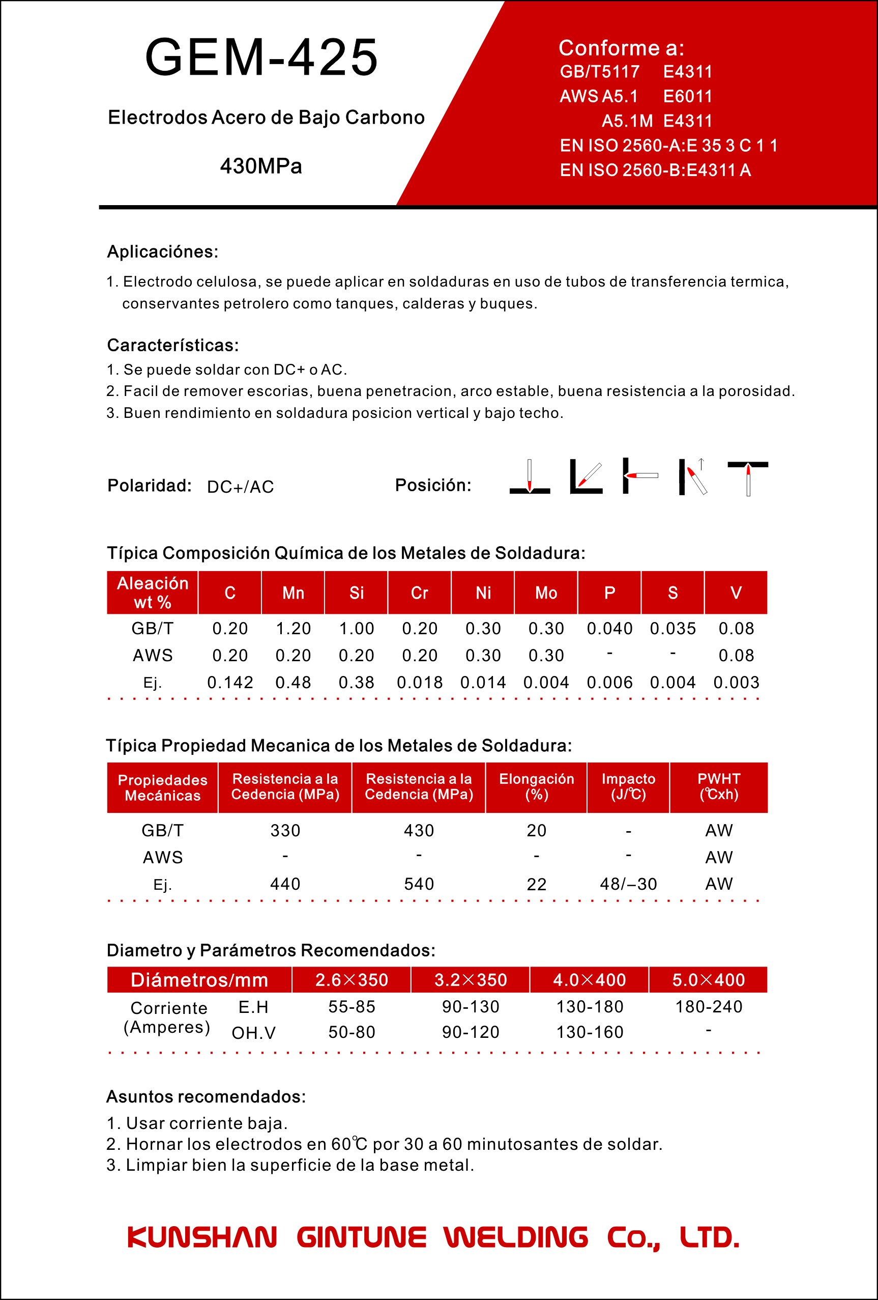 • Con normas GB